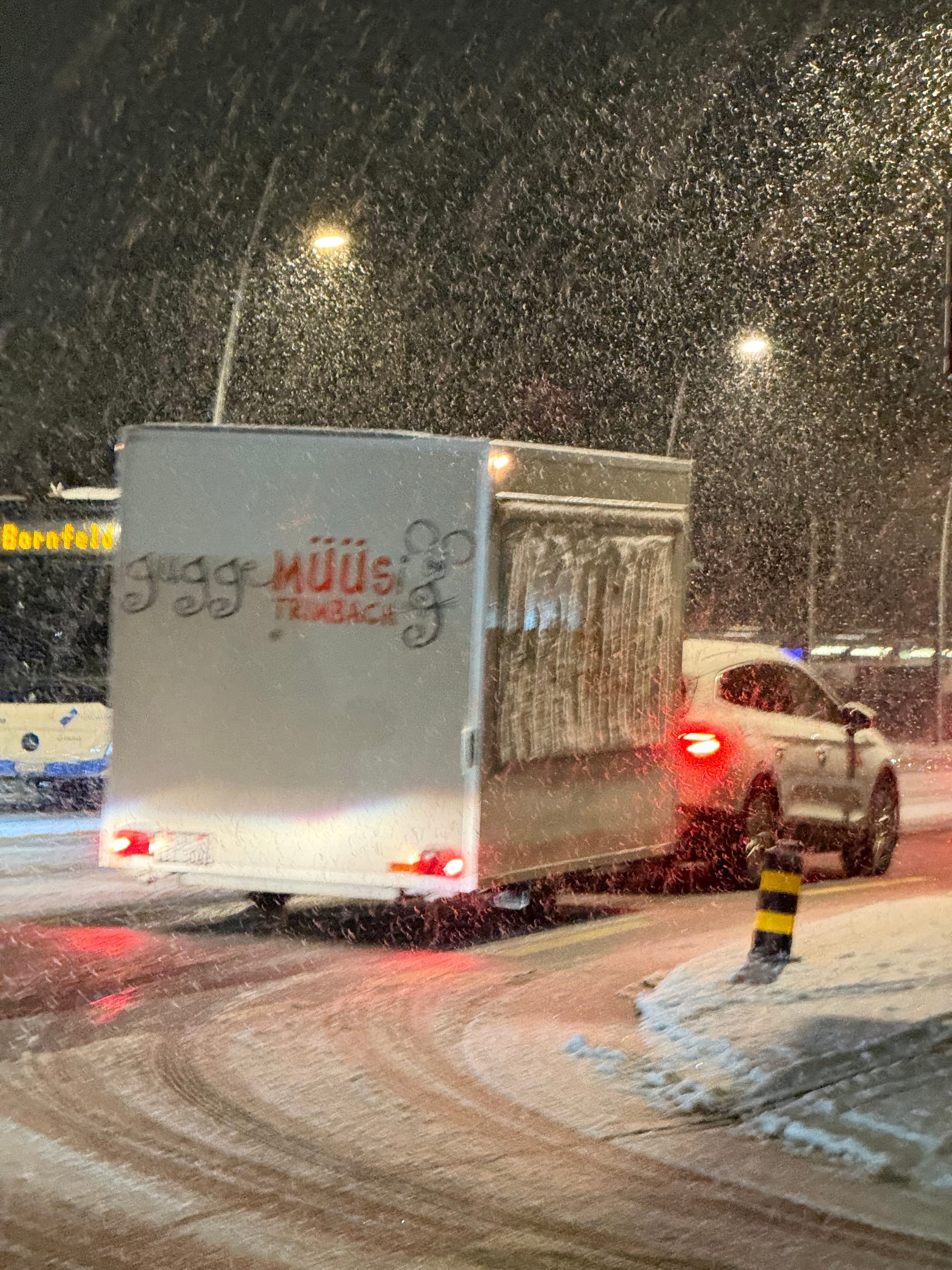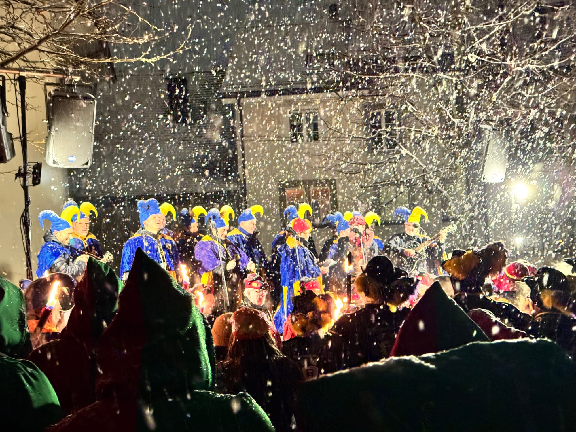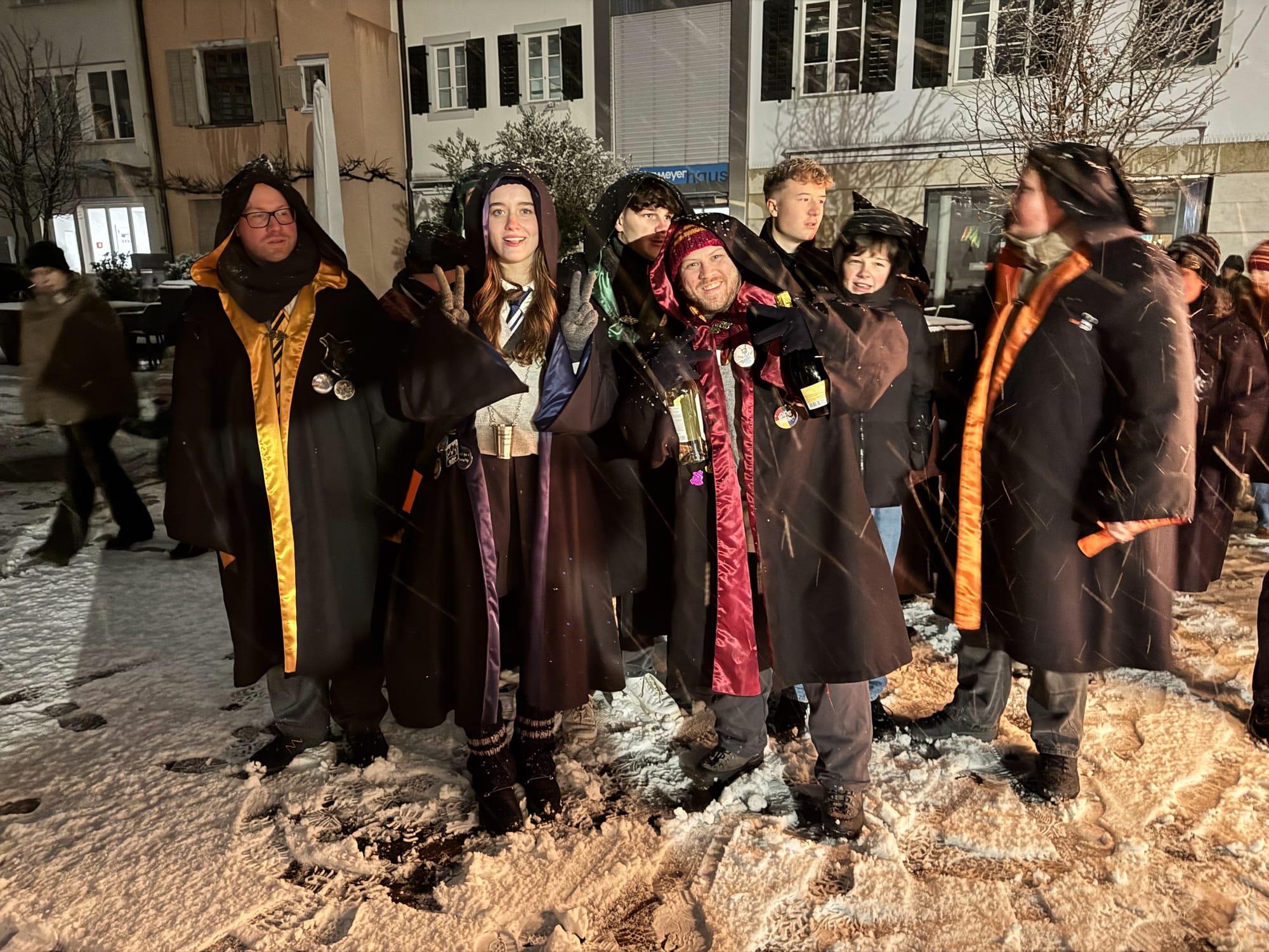 Nach der Fezübergabe vom Obernaar 2025, Cosinostra, an den neuen, Andrea Primo Secondo von der Tannzapfenzunft, die dieses Jahr in schönstem Schneegestöber stattfand, sangen wir ein herzliches "Happy Birthday" für unsere Leonie, die einen speziellen Geburtstag feiern konnte. Und dann ging's in der Schützi weiter mit - wer hätte es gedacht - Hörnli! Auch hier konnten sich die Guggilari-Gäste sowie die Musiker/-innen stärken für eine erste, lange Fasnachtsnacht.